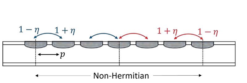 Chapter Mimicking quantum tunnelling using programmable active acoustic metamaterials A A A In a recent pilot study, researchers report a peculiar tunnelling phenomenon that occurs in acoustical systems with non-reciprocal couplings, which can open new opportunities for controlling the propagation of sound waves in ducts and other acoustical waveguides. By Felix Langfeldt and Joe Tan, Institute of Sound & Vibration Research, University of Southampton, and Lea Beilkin and Sayan Jana, School of Mechanical Engineering, Tel Aviv University Tunnelling is a phenomenon in quantum mechanics. It allows particles to pass, with a certain probability, through a barrier that would be impenetrable for the particle according to classical mechanics. Known phenomena include, for example, tunnelling of relativistic particles through energy barriers of arbitrary heights and widths in graphene and other structures, across the event horizon of black holes, through superconducting junctions, and more. Translating this exciting property into the acoustic realm holds the potential to substantially advance waveguiding capabilities in acoustical systems. In the project Active acoustic metamaterials for non-Hermitian sound propagation phenomena inspired by quantum mechanics, funded by the UK Acoustics Network’s third funding call, the team of scientists from the University of Southampton and Tel Aviv University derived and experimentally demonstrated a new form of a tunnelling-like phenomenon for sound waves through a non-Hermitian barrier. Non-Hermitian physics refers to non-conservative systems that interact with the environment. One of the underlying mechanisms of these systems is non-reciprocity. The wave propagation through such non-reciprocal systems is usually amplified in one direction and attenuated in the other, which is known by the non-Hermitian skin effect. Above: Figure 1: Schematic representation of the active acoustic metamaterial setup that was derived and studied during the project. The drawing on the left shows the overall setup with several active unit cells (grey) embedded in the wall of an acoustic waveguide. Each unit cell consists of two loudspeakers and two microphones (right). A programmable controller allows to change the parameter η that determines the strength and direction of the system’s non-reciprocity Design of the active acoustic metamaterial For studying the behaviour of sound waves propagating through a non-Hermitian acoustic system, the team designed a one-dimensional waveguide with an array of loudspeakers, microphones, and controllers (see Figure 1), forming an active acoustic metamaterial. Metamaterials are periodic structures composed of engineered unit cells that are smaller than the wavelength and by carefully designing the properties of the unit cells and including active elements like loudspeakers and microphones, the behaviour of sound waves propagating through the metamaterial can be tailored towards a desired response. The key to realising non-reciprocity in this system lies in the control parameter η, shown in Figure 1, which determines the degree of non-reciprocity in each part of the metamaterial. In the left half (blue arrows), the weaker coupling (1-η) is in the left direction and the stronger coupling (1+η) is in the right direction. The couplings are mirrored about the centre of the metamaterial. As a standalone system, each half of the system supports the non-Hermitian skin effect, in which modes are accumulated at the boundary of the weaker coupling. However, in the project the team investigated what happens to a wave that propagates along the array and hits the interface. The skin mode accumulation, which effectively constitutes a barrier, forbids wave penetration into the interface, but surprisingly, under certain conditions the wave is transmitted to the other side, keeping the interface dark, as if the wave invisibly tunnelled through it, as illustrated in Figure 2. Remarkably, the tunnelling is independent of the interface length. Time-domain finite element method simulations were used to verify the tunnelling effect in a continuous acoustic system as shown in Figure 1, investigate the impact of the electroacoustic properties of the loudspeakers and how they are driven on the tunnelling performance, and explore possible approaches for re-programming the control laws to achieve different tunnelling strengths or even different non-Hermitian sound propagation effects. To verify the numerical results, the team then built an experimental demonstrator (see Figure 2), which consists of an array of nine loudspeakers and microphones and a digital controller. The experimental results confirm the tunnelling phenomenon, and demonstrate the re-programmability of the system by modifying the control law on the digital controller for each unit cell, e.g. to study different non-reciprocity strengths η. Above: Figure 2: Experimental setup for demonstrating the quantum tunnelling effect realised using the active acoustic metamaterials developed in the project. This photograph shows the rectangular duct with an array of nine loudspeakers attached to the top wall of the duct, representing the active metamaterial unit cells. The colour map along the centre of the duct is a computer-generated overlay created using a simulation model, illustrating the tunnelling of a sound wave through the metamaterial Applications This pilot study uncovered how an interesting tunnelling phenomenon can be realised for acoustic waves using active acoustic metamaterials. This can lead to a range of possible useful applications, e.g. to realise quiet zones in acoustical systems or tunnel sound waves through obstacles for sensing applications. The theoretical, numerical, and experimental framework that was developed in the project will enable further research on this specific phenomenon, e.g. to study the stability of the control laws, extend the concept to higher dimensions, or investiga