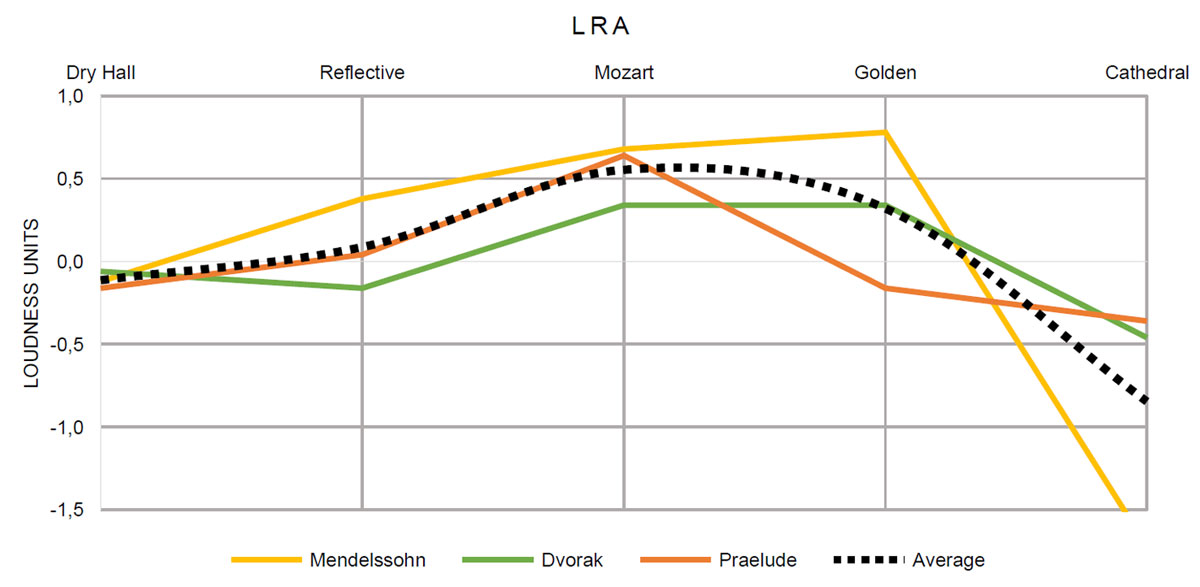 A A A Volume : 45 Part : 2 Proceedings of the Institute of Acoustics A comparison of musical performances in different acoustic environments created with an active acoustics system Benedikt Roß, Amadeus Active Acoustics, Vienna, Austria Volker Werner, Amadeus Active Acoustics, Vienna, Austria Clemens Frischmann, Amadeus Active Acoustics, Vienna, Austria Simon Neeten, Amadeus Active Acoustics, Vienna, Austria 1 INTRODUCTION Musical performances are closely linked to the acoustics of the room in which they take place. The assumption, that playing music in a room with good acoustics is more enjoyable and that the musicians feel more comfortable, is obvious. But do the room acoustics also change the way the performers play? Do they influence the chosen tempo, the loudness and the range of musical dynamics? Many musicians claim to react consciously to the sound of the room in their interpretation. For example, conductors describe this circumstance in interviews with Beranek1. But apart from these conscious adjustments, are there perhaps also subconscious changes that even the musicians themselves are unaware of? To examine these questions in more detail, performances by a string quartet and a solo cellist were recorded and analyzed in a room with an Active Acoustic System. This setup allowed the performers to play the same piece in five different acoustic environments within just one hour. The evaluation assessed several parameters that can vary in musical performances, such as tempo, loudness and dynamic range. In addition, the musicians were asked about their own perception and these answers were also evaluated. 2 PREVIOUS RESEARCH In recent decades connections between room acoustics and musical interpretation have been investigated. A study examining performances by several pianists in a room with variable acoustics demonstrated that longer reverberation times lead to a reduction in loudness2. However, the reduction of the playing tempo with longer reverberation times, which is often described by musicians and seems to make sense depending on the character of the piece3, could not be proven. Only later studies were able to scientifically prove this phenomenon, whereby not only very long reverberation times seem to reduce the playing tempo, but also the dry acoustics of the anechoic chamber in which the recordings were made4,5. With their studies of concert performances by a solo cellist in various concert halls, Schärer Kalkandjiev and Weinzierl were able to demonstrate the influence of room acoustics on additional musical parameters, such as overall loudness, dynamic range and timbre6. The detailed analyses of the concert recordings revealed that different acoustic parameters influence different interpretative aspects more strongly than others. Also, results can be observed which vary from previous studies, for example the relationship between loudness and reverberation time. It is suspected that the reason for these contradictory results lies in the different individual preferences and levels of experience of the performers. A later publication by Schärer Kalkandjiev and Weinzierl explained at least partially how these deviations arise: The experiment with different musicians in virtual acoustics could demonstrate that the interpreters' subjective assessment of the acoustic room quality can differ. Also, the perception of quality had an influence on certain aspects of the interpretation. Even though the musicians did not agree on, which rooms they found best, the result was clear: In rooms in which musicians feel more comfortable, they play faster, force less loudness, make more use of the dynamic range and use less agogic7. The finding that different musicians do not adapt their interpretation in the same way to changing room acoustic environments is also confirmed in other studies5,8. However, with all these experiments, there are always problems that arise from the fact that the acoustics of a room cannot be changed easily and quickly by conventional means. The research results obtained from the project with the cellist came from various concerts that took place on different days, which means that other factors besides the room acoustics, such as the mood and state of mind of the artist, could also have influenced the interpretation. In order to avoid this problem, later research projects worked with binaural impulse responses, which enabled the musicians to play in different virtual acoustics with headphones and without changing locations7,9,10. Although the choice of the headphone system enabled the musicians to perceive the direct sound of their instruments without alteration, the unfamiliar situation could have influenced the interpretation. Moreover, the credibility of the perception of binaural audio simulations is strongly dependent on how well the simulated HRTFs correspond to those of the performer´s ears. Therefore, the approach of the project presented and evaluated in this paper is a third one: the musicians were able to play in a room equipped with a temporary installation of an Amadeus Active Acoustics system. This made it possible to change the acoustics instantly at the push of a button without the musicians having to move to another room. At the same time, the performers could play without headphones and perform in a familiar setting. This offered an optimal starting point for such a sensitive and differentiated topic as the interpretation of music. 3 LOCATION The recordings of the performances were all made as part of a thesis project in the “Klangtheater” Hall (“soundtheater”) at the University of Music and Performing Arts Vienna (mdw). The “Klangtheater”, in the further course referred to as “Dry Hall”, has a footprint of approximately 180 square meters and a height of 8.7 meters. Since it is primarily intended for the presentation of immersive electro-acoustic compositions and pop-music performances, the natural acoustics are kept dry. The aver