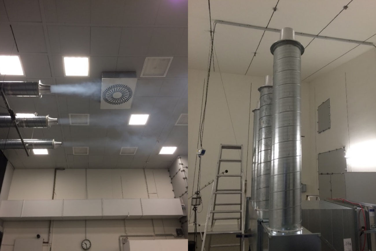 A A A Volume : 45 Part : 2 Proceedings of the Institute of Acoustics Sound isolation and HVAC noise control: Design versus practical challenges and constructibility Rachid Abu-Hassan, Arup Acoustics, New York, USA Andy Guthrie, Arup Acoustics, San Francisco, USA Alban Bassuet, Arup Acoustics, New York, USA Raj Patel, Arup Acoustics, New York, USA Ryan Biziorek, Arup Acoustics, New York, USA 1 INTRODUCTION Opened in 2017, the new Stavros Niarchos Foundation Cultural Center (SNFCC) is one of the largest cultural projects recently realized in Europe. The vast and ambitious development is a cornerstone of continued urban renewal and regeneration, as well as a progressive 21st Century investment in cultural infrastructure for Greece to share knowledge, culture, and the presentation of the performing arts. Its success is in many ways a symbol of the revitalization of the country after its period of crisis, playing a major role in the economic, cultural and sociological development of Athens and of the country. The opera house building facility is a compact building, which includes challenging adjacencies between loud and noise sensitive performance and rehearsal spaces, that resulted in innovative noise and vibration control mitigations. In this paper, we aim to present practical and constructability challenges for sound isolation and HVAC noise control through two case-studies developed for the 480-seat Alternative Stage. The first addresses the feasibility of constructing the full concrete box-in-box around the Alternative Stage, and offers practical solutions through early contractor engagement, and an understanding of construction sequencing. The second investigates the role of aerodynamics and materiality through testing, in order to achieve a low background noise in the space with high diffuser face velocity. Concrete Box-in-Box: The main challenge in this space was the question of how and when to pour the concrete roof slabs of a box-in-box in a cast-in-situ building. On one hand, accessing the formwork of the outer box is impossible if the roof slab of inner box is already in place. On the other hand, it is not possible to pour the roof slab of the inner box, if the outer box slab has already been poured. Early contractor engagement, clear mapping of the construction sequencing, and close collaboration with the structural engineer resulted in a hybrid metal deck / flat slab solution ensuring the feasibility and integrity of the box-in-box for the Alternative Stage. Air-Distribution and Low Background Noise: Design guidance and standard practice for low noise ventilation systems require extremely low air velocity throughout the system. However, in cases requiring long-air-throws, low diffuser face-velocity is not possible. Turning the attention to aerodynamics, materiality, and diffuser wall friction made it possible to achieve the specified low background noise with excessively high diffuser face velocity. 2 CASE-STUDY #1: CONCRETE BOX-IN-BOX 2.1 Criteria & Design Challenges Not surprisingly, given its proximity to the Opera Theatre, the Dance School, and Rehearsal Spaces, the Alternative Stage at SNFCC required a full box-in-box construction. However, design constraints, spatial limitations, and overall technical systems required a rethinking of the typical box-in-box construction, and a close collaboration with the Project’s Structural Engineers. The box-in-box structure had to accommodate for the following, while maintaining the integrity of the sound isolation: Catwalks and performance equipment trusses, all suspended from the ceiling. Wrap-around gantries and two balcony levels, accommodating close to a third of the overall audience capacity, supported off the walls. While the outer box was namely cast-in-situ concrete, the inner box was comprised of the following separate components, (illustrations on Figure 1 and 2): Floating concrete floor: A 200-mm normal weight concrete slab on top of 6-mm deflection neoprene pucks. The concrete floor floated within an independently isolated perimeter concrete beam. Isolated perimeter concrete beams: 400x340-mm concrete beams on 25-mm continuous neoprene pads, running the entire perimeter of the Alternative Stage, separated from the outer box by a 50-mm continuous neoprene pad, and separated from the floating concrete floor by a 50-mm acoustically-sealed isolation joint. Inner box steel structure: A steel structure comprising of steel columns, cross-bracing, and beams sat onto of the isolated perimeter beams, 90-mm away from the outer box with neoprene bracing. Concrete loaded metal deck: A corrugated metal deck topped with 150-mm concrete. Inner CMU block walls: 120-mm 75% solid CMU block walls were built on top of the concrete perimeter beam in front of the inner box steel structure. This design approach allowed for a fully contained, fully independent, box-in-box with little compromise. The inner box steel box and the isolated perimeter concrete beams were designed specifically to carry entire load of the Alternative Stage, including the walls, ceiling, balconies and gantries, catwalks, and the performance equipment trusses. By incorporating the perimeter concrete beams and inner steel structure into the design, we were able to free the floating concrete floor from excessive perimeter loads, and eliminate inner ceiling / wall penetrations for structural loading. Figure 1: Floating Floor and Perimeter Beam Detail Figure 2: Details of steel structure loading and inner box ceiling 2.3 Site Challenges & Contractor Collaboration Given the design described above and its various components, successful execution onsite required the contractor to fully embrace the design, work with us collaboratively to overcome site challenges, and most importantly to outline a clear construction sequence and methodology in which the various components can be built/installed. One key challenge with regards to sequence of construction was the question of the inne