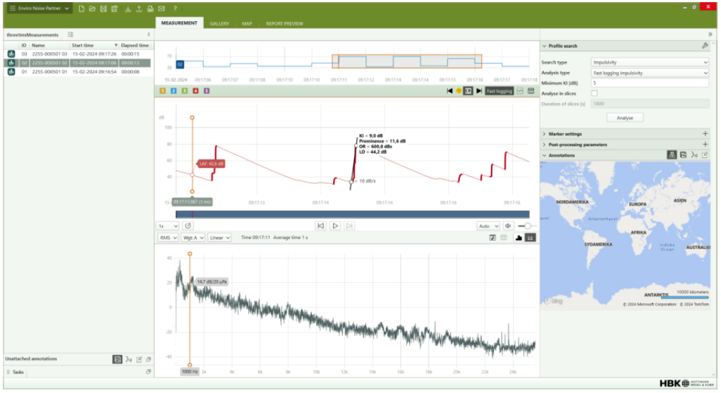 A A A Volume : 46 Part : 2 Proceedings of the Institute of Acoustics Different logging rates for measuring the prominence of impulsive sounds and for adjustment of LAeq D. Manvell, DMdB, Teglgaardsvej 52, 1, 2920 Charlottenlund, Denmark T. King, Hottinger Brüel & Kjaer, Teknikerbyen 28, 2830 Virum, Denmark M. Whiteman, Hottinger Brüel & Kjaer, Teknikerbyen 28, 2830 Virum, Denmark 1 INTRODUCTION As noise with prominent impulsive sound is more annoying than continuous types of noise (without impulses) with the same equivalent sound pressure level, an adjustment is added to the measured LAeq if prominent impulsive sound is present. In ISO 19961,2, three categories of impulsive sound have been found to correlate best with community response, and adjustments are given for each. Several sources with impulsive characteristics are categorised in ISO 1996-1. The non-exhaustive list of examples includes compressed air release, scrap handling, goods delivery, fork lifts with rattling forks, skateboard ramps, industrial shearing, gas discharges, percussive tools in demolition, powered riveting, etc. However, the list of sources of impulsive sound for each category is incomplete. Therefore, ISO developed a method, ISO/PAS 1996-33, which defines an objective method to measure the prominence of impulsive sound relative to residual sound. ISO/PAS 1996-3 is a development of BS 41424 and the objective method has been refined based on discussions among UK and international experts. Annex A of ISO/PAS 1996-3 encourages further research to support the development of a full ISO standard. This includes the application of real-world sources assessed at receiver locations including typical signal to residual noise ratios. 2 THE ISO/PAS 1996-3 OBJECTIVE METHOD The objective measuring method in ISO/PAS 1996-3 categorises sources by determination of the prominence of impulsive sound, with the aim of correlating to community response. The method is intended for sources not identified as gunfire or high-energy impulsive sound. It typically produces adjustments in the range 0,0 dB to 9,0 dB. These adjustments are intended to be used to categorise the sources as either regular impulsive or highly impulsive sound sources and apply the penalty indicated in ISO 1996-1. However, the adjustments may be applied directly, as is done in Nordtest Acou 1125, and in BS 4142:2014+A1:2019 where it has also been adopted. The method is based on the onset rate and level difference for the A-weighted time history of the sound pressure level with time weighting F. The method was originally developed and tested in a Nordtest project that led to Nordtest Acou 112 where the influence of the sampling interval for the A- weighted sound pressure level with time weighting F was tested 6 . The sampling interval had an effect on the result but, to enable the use of several types of measuring equipment, it was decided that sampling intervals in the range of 10-25 ms could be allowed, with 10 ms preferred for the best accuracy. The shorter the logging interval, the more precisely the method follows the actual impulse. However, this does not take account of human response accounted for in the method. During development in the ISO Working Group, ISO TC43 SC1 WG45, the method was reviewed and refined, and its description and application made more rigorous. One example was the review of a study of the different logging intervals as well a comparison of the Onset Rate determination method to 2 alternative methods, covering 14 different impulsive sound sources, subsequently published by Tickell7. In the published method, measurements are made with instruments conforming with Class 1 as specified in IEC 61672-18 with the additional logging of LpAF , the A frequency-weighted and F time- weighted sound pressure level, at time intervals in the range 10-25 ms (incl.). Use of short-term L Aeq (e.g. 10 ms), although not preferred, is permitted to compute the L pAF values. Measurements based on samples with time intervals of 100 ms may be used for surveys and screening, as many modern sound level meters can do this while recording the audio in sufficient detail for later analysis. However, it was identified that using this time interval results in a higher uncertainty. Figure 1: Time history of the L pAF sound pressure levels. LD is the level difference, L s and t s relate to the starting point, L e and t e relate to the end point, OR is the onset rate, and gradients of over 10 dB/s are indicated in red (source ISO PAS 1996-3). ISO 1996-2 provides additional guidance for performing these measurements. The ISO PAS 1996-3 method is intended to complement the ISO 1996-2 measurement method for general purpose environmental noise assessment. A comparison of the PAS to BS 4142:2014+A1:2019 shows the following main differences: a 100 ms sampling rate is permitted for survey measurements a default 30 minute ”assessment time interval” over which the impulse adjustment is applied, with shorter intervals permitted for short-duration reference time intervals Further details of the method as well as the changes made during development can also be found in a Euronoise 2021 paper by Manvell & Pedersen9. Figure 2: Automatic ISO PAS 1996-3 compliant impulse detection in Enviro Noise Partner. The method is supported by commercial solutions such as HBK’s 2255 Sound Level Meter and Enviro Noise Partner10,11,12. This enables impulse assessment with a 16 ms LpAF sample rate in accordance with ISO PAS 1996-3. The solution automatically detects the impulses and identifies the most significant one (example shown in Figures 2 and 3). In addition, this solution enables the analysis to be done for multiple assessment time intervals such as the method’s default interval of 30 minutes. Figure 3: Impulse detection based on 16 ms LpAF sampling (thick red line) showing slope (black), start and end points (circles). The short LAeq is in blue, the thin red line is the 1 ms LpAF . 3 THE