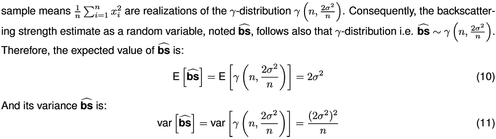 A A A Volume : 46 Part : 1 Proceedings of the Institute of Acoustics Metrology of the acoustic seafloor response: How to accurately estimate backscatter and its intrinsic uncertainty using single-beam echosounder I. Mopin, ENSTA Bretagne, UMR 6285, Lab-STICC, France G. Le Chenadec, ENSTA Bretagne, UMR 6285, Lab-STICC, France M. Legris, ENSTA Bretagne, UMR 6285, Lab-STICC, France Ph. Blondel, University of Bath, Department of Physics, United Kingdom B. Zerr, ENSTA Bretagne, UMR 6285, Lab-STICC, France J. Marchal, Sorbonne Université, UMR 7190, Inst. J. le Rond D’Alembert, France 1 INTRODUCTION Acoustic seafloor response has become the key parameter for many if not most marine surveying communities. Its measurements have been widely extended in hydrography using predominantly bathymetric echosounders, and are used in diverse applications such as habitat mapping, seabed characterisation and classification. In parallel, numerous theoretical models have been developed in recent decades to study its link with physical or heuristic bottom parameters. Measurements of seabed backscatter, its related applications and its theory are three separated but inter-connected domains dealing with the seafloor acoustic response. The metrologic work presented in this paper proposes to link these three approaches of the seabed backscatter. While analysing how these three domains deal with the backscatter, it appears that the nature of the acoustic seafloor response itself is equivocal. Based on statistical and physical hypotheses, a metrological definition of the backscatter is established in section 2, connecting seafloor response measurements, applications and theory. In particular, the deterministic backscatter parameter derived theoretically is usefully linked to the stochastic nature observed in practice during backscatter measurements. This yields in section 3 a method for accurately estimating backscatter from echosounder data: the best choice of backscatter estimator is justified based on analytical calculations, and ways to represent its uncertainties are proposed. Finally, section 4 shows an example of application of the identified best backscatter estimator and of its uncertainty formulation and estimation using single-beam echosounder data8. 2 METROLOGIC DEFINITION OF SEABED BACKSCATTER In most literature on the seafloor acoustic response, it is mainly named, described, modelled, and processed as a single scalar value. This value was observed2 and proved9 to be dependent of the incidence angle θ i of an acoustic signal on the seafloor and of its frequency f. We call it in this paper "seabed backscattering strength" or "backscatter" which involves monostatic measurements. Shorten as BS or BS (θ i , f ), its angular variation is known as ARC10 (angular response curves). Considering an incident intensity Ii scattered by a unit area of seafloor A1 = 1m2 at a reference range r1 = 1 m, the backscattering strength is usually defined as a surface index as the ratio in decibels14: where Is is the intensity scattered by the unit area of the seafloor. 2.1 Three domains dealing with seabed backscatter Theoretical backscattering strength models are numerous6 and mainly assume the seafloor as an interface between the sea water and the sediment. This interface can have different properties (flat, rough, penetrable...) depending on the application and which details the user is interested in. In the main literature BS (θ i, f ) is considered deterministic i.e. at a given angle, frequency and seafloor nature corresponds only one value of BS. Similarly, in practice, the backscatter is derived from echosounder measurements using a sonar equation yielding the deterministic parameter: where EL is the received echo level, SL is the source level of the echosounder, DITx is the transmission directivity index, TL is the transmission loss between the echosounder and the seabed, Gcalib is the calibration gain of the echosounder, A is the instantaneous insonified area on the seafloor. However, when observing BS measurements, a large variability appears4. It is due to two main sources: external phenomena with no relation to the seafloor (changes in echosounder characteristics, environment modifications, etc.) and specific characteristics of the seafloor (temporal changes of the seabed, geographical variations, spatial variabilities in the echosounder beam footprint, intrinsic variability of the scattering mechanism). The first source impacts are restricted by frequent measurements of the environment parameters (sound speed, absorption) during surveys and by performing echosounder calibrations as often as possible. In order to limit the impacts of the second source, time and spatial spread of the analysed data can be reduced. However, the intrinsic randomness of the scattering process will remain. This random process, detailed in section 2.2, leads inevitably to a random backscattering strength. Consequently, from this point of view the seafloor acoustic response is a random variable which mean and variance are specific to a seafloor type (at a given incidence angle and frequency). 2.2 Link between deterministic and stochastic backscatter natures In order to link the two equivocal natures of the backscattering strength described previously, the scattering process is modeled using a point-scattering model1. It is based on the assumption that the seafloor area A insonified instantaneously by the echosounder is composed of individual scatterers that contribute to the final backscattered signal. The complex amplitude As of the signal received by the echosounder is then a random variable that depends on the seafloor scatterers characteristics. Linearly, the deterministic sonar equation can be written as: where Ceq.so is a constant including all sonar equation parameters (systems and environment), Aiis the amplitude of the transmitted signal (at the echosounder front), and A is the complex backscattering strength amplitude whic
