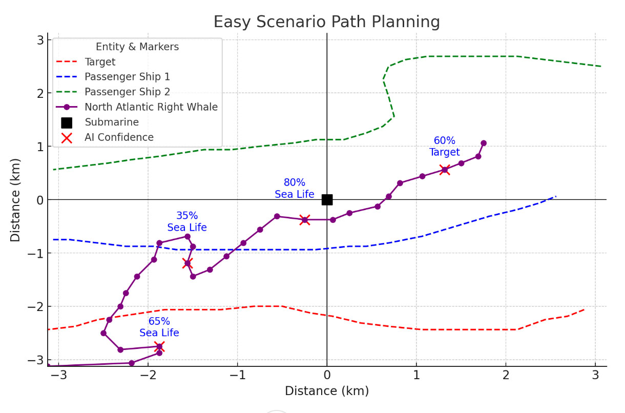 A A A Volume : 46 Part : 1 Proceedings of the Institute of Acoustics An underwater passive acoustic serious game to research empathetic artificial intelligence Madalin Facino, University of Bath, UK Andrei Vladescu, University of Bath, UK Christof Lutteroth, University of Bath, UK Alan Hunter, University of Bath, UK Aaron Roberts, Thales Underwater Systems, UK Samantha Dugelay, Thales Underwater Systems, UK 1 INTRODUCTION AND BACKRGOUND As submarine sensors grow increasingly advanced, managing escalating data volumes and pressure for command teams will be crucial. This surge in data is likely to heighten operator workloads as it necessitates thorough analysis and integration into the tactical overview60. Workload, in this sense, can be understood as the balance between the mental processing demanded by a task and the operator’s capability to manage this demand18 19. Maintaining an optimal cognitive arousal level is vital8; overstimulation, or cognitive overload, can result in risk-taking behaviors38, disordered task execution19, delayed task completion5, overlooked secondary tasks49, vigilance decrement36, diminished performance34, and, in severe cases, complete performance failure19. Historical incidents, like the 2015 collision between the stern trawler Karen (B317) and a Royal Navy submarine, underline the grave consequences of operator overload30. Sonar operations in underwater settings face unique challenges due to complex marine conditions, weak signal reception compounded by strong background noise, and significant interference—all of which degrade communication quality and complicate underwater object detection47 62 63. These conditions are exacerbated by high transmission delays, limited bandwidth, and the energy constraints of underwater sensor nodes58. Further, the psychological toll on sonar operators is profound. The complexity of natural sonar targets generates multiple echo points, increasing the cognitive demands of distinguishing between actual targets and clutter39 52 61. Long-term exposure to such intricate auditory signals can affect operators’ psychological well-being, evident in changes to auditory event-related potentials32. These factors, combined with the inherent stress of submarine environments50, intensify the psychological strain on operators55. Whilst the collaboration between sonar operators and artificial intelligence (AI) is becoming increasingly necessary with data growth, distrust in AI technologies remains a major obstacle22 26 37. This paper proposes a method for testing a novel strategy to alleviate these psychological impacts and trust barriers through the development of empathetic AI. We suggest that integrating empathy into AI could foster trust, thereby enhancing the team dynamic, team performance, and reducing operator cognitive load. To explore this hypothesis, we have developed a serious game within the Unity platform, simulating realistic sonar operation conditions. This game focuses on key psychological and cognitive factors involved in sonar operations whilst utilizing established acoustic models and physics1 6 59. The game design is centered around tasks that involve perception, multitasking, and stress management, ensuring that our study maintains ecological validity57. Submarine sonar operations pose a triad of formidable challenges for operators: multitasking, perception, and pressure management, each significantly affecting operational efficiency and psychological well-being25 57. The intense demands of multitasking require operators to simultaneously process varied acoustic signals, maintain situational awareness, communicate findings, and make pivotal decisions. This cognitive burden, as underscored by findings using NASA’s Task Load Index18 19, highlights the pressing need for innovative tools designed to alleviate these pressures. The perceptual challenges in sonar operations are equally daunting. Operators must distinguish critical signals from pervasive background noise within a complex underwater soundscape53. This task demands not only technical acumen but also continuous cognitive engagement. Additionally, the high pressure conditions inherent in submarine operations—characterized by extended submersion, erratic sleep patterns, and high-stakes decision-making – intensify psychological stress, potentially undermining both performance and mental health50. Current training simulations like MATB45 and the naval warfare simulation game Dangerous Waters43 offer foundational frameworks but do not fully address these multifaceted challenges. MATB focuses primarily on procedural and multitasking skills but offers limited insight into the perceptual complexities of sonar operations. Dangerous Waters, while providing an intricate portrayal of naval engagements, is constrained by its complexity and steep learning curve, which may impede its effectiveness in psychological impact studies focused on specific cognitive and emotional responses. Critically, these platforms do not incorporate biosignal monitoring, a key aspect in assessing physiological markers during operations16 17 21 which will serve to inform an empathetic response. Recognizing the state-of-the-art in current underwater acoustic training tools, there is a critical need for a simulation that not only represents the acoustic and operational conditions of sonar operations but also serves as a dedicated medium for studying psychological impacts. Our proposed serious game environment, which will integrate empathetic AI, is designed to address this need. By recognizing and responding to human emotions, empathetic AI holds the promise of enhancing human-machine collaboration. This innovative integration could reduce cognitive load, improve perceptual accuracy through adaptive interfaces, and alleviate operational pressures by offering psychologically attuned support. Furthermore, the efficacy of serious game environments in such applications has been substantiated in an