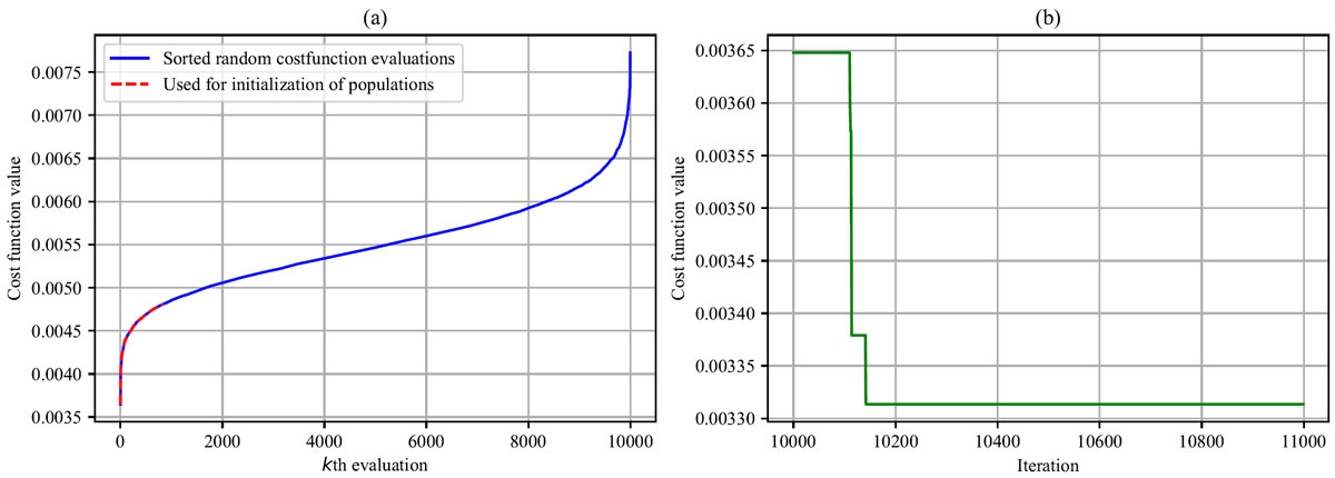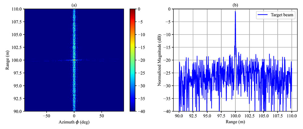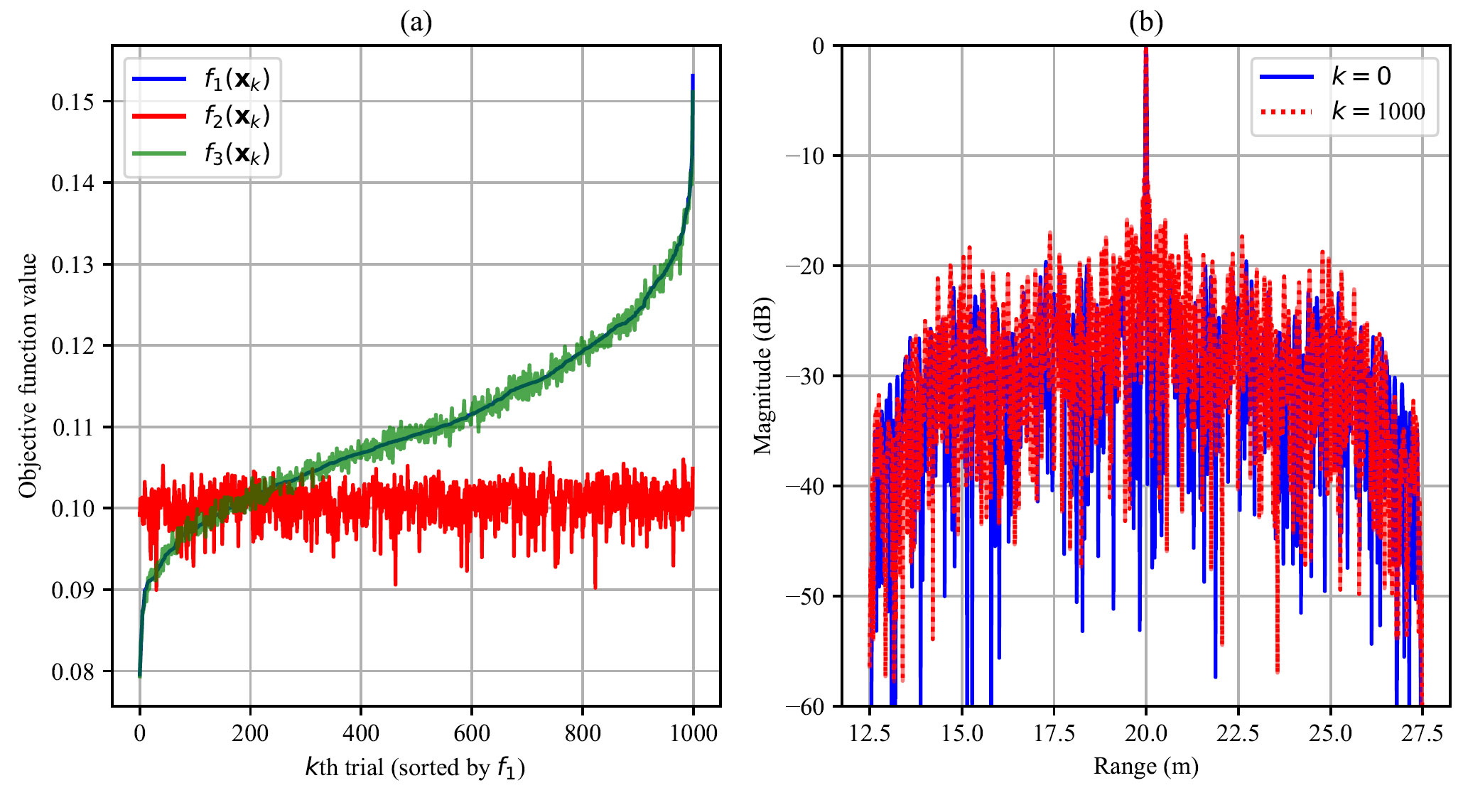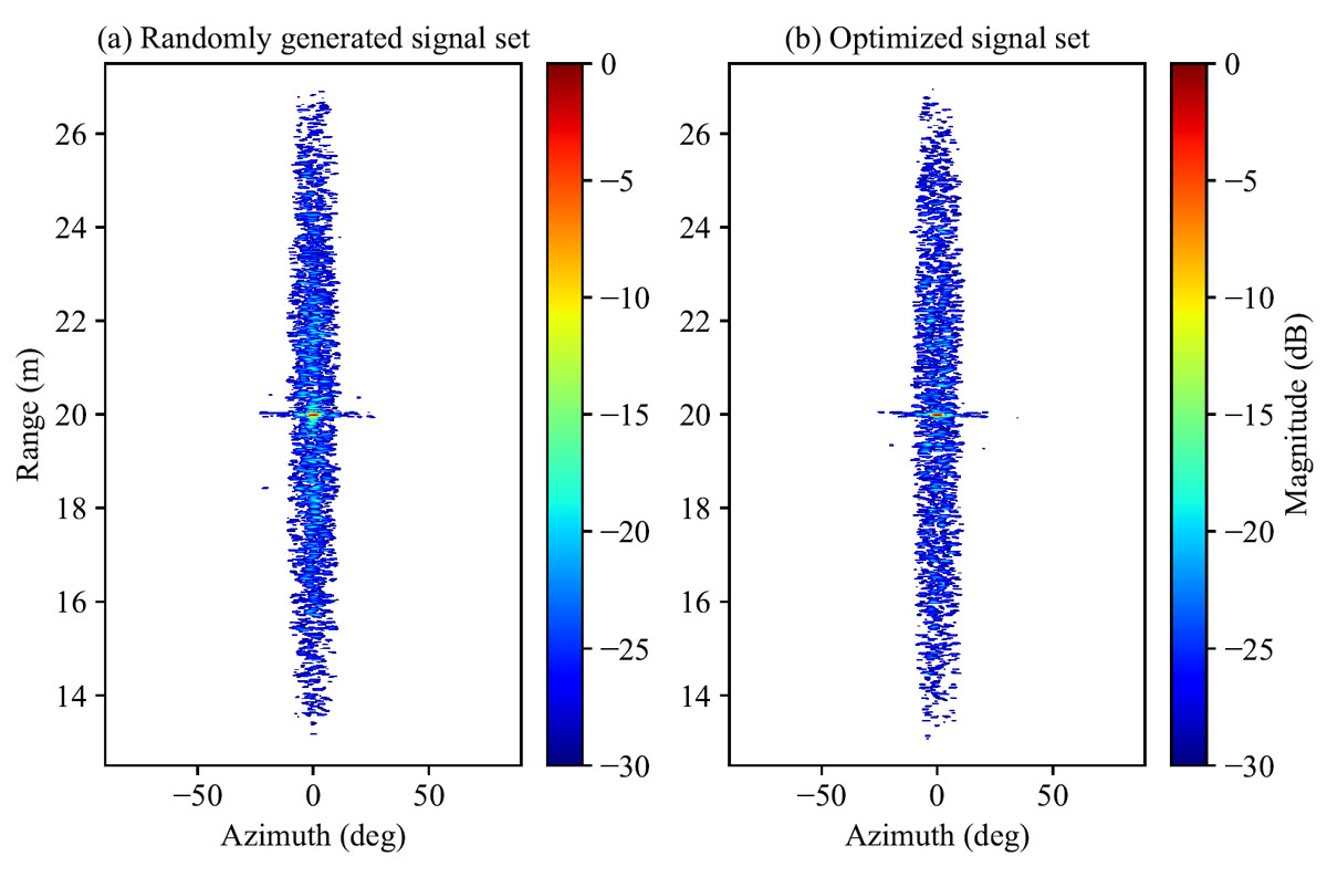 A A A Volume : 46 Part : 1 Proceedings of the Institute of Acoustics Pulse form optimization for MIMO sonar systems Sven Schröder, German Aerospace Center, Institute for the Protection of Maritime Infrastructures, Germany Sarah Barnes, German Aerospace Center, Institute for the Protection of Maritime Infrastructures, Germany Dieter Kraus, City University of Applied Sciences Bremen, Germany Anton Kummert, University of Wuppertal, Germany 1 INTRODUCTION Essential for the MIMO principle is the ability to separate the transmitter signals from each other at the receiver-side signal processing. Signal separation methods are typically divided into the categories Time-Division-Multiplexing (TDM), Frequency-Division-Multiplexing (FDM) as well as Code-Division-Multiplexing (CDM) [12]. When applying the TDM method to MIMO sonars, the transmitter signals are emitted in different time slots to be able to separate them in time after receiving. However, this implies a longer overall ping period within the observed scene may change. These changes may impede the coherent processing of the consecutively emitted transmitter signals and can result in a reduced angular resolution enhancement. The FDM method is based on a division of the available frequency band in sub-bands. This reduces the bandwidth of each transmitter signal, which consequently leads to a decreased range resolution. In addition, coherent processing of frequency divided signals causes artefacts in the Point- Spread-Function (PSF) of the system [13, 3]. This paper is focussed on the CDM method which uses coding techniques to enable a simultaneous transmission of all transmitter signals in the same frequency band. The receiver-side pulse separation and compression are realized with a bank of matched-filters. This paper deals with the optimisation of MIMO pulse sets with respect to the sidelobes in the distance domain of the PSF of the system. In the literature, pulse optimisation is usually applied to single transmitter signals, trying to minimise the sidelobe level in the autocorrelation [6]. This ignores the coherent signal processing of MIMO systems, where constructive interference can lead to high sidelobes in the PSF. However, integrating the computationally complex simulation environment into the optimisation slows it down significantly, which is why a simplified form with sufficient predictive power of sidelobes in the PSF is to be found. In this work, three cost functions are compared with each other and used to optimise an Orthogonal-Frequency-Division-Multiplexing (OFDM) signal set. In Section 2 the used OFDM signal is described in more detail. Section 3 describes the cost function and optimisation of the transmitter signal set. The results of the optimisation are presented in Section 4. Finally, Section 4 summarises the work. 2 TRANSMITTER SIGNAL One in the MIMO radar literature often considered transmitter signal candidate is the OFDM signal, cf. [9, 10, 8]. OFDM signals have their origin in communications technology and represent a comparatively new field of research for application in MIMO sonar systems. The principle is based on a multiplexing technique using orthogonal carrier frequencies. For this purpose, the transmitter frequency band is divided into sub frequency bands Bsub whose width depends on the length of the OFDM signal by the orthogonality condition If this condition is satisfied, the carrier frequencies lie in the first null of the sinc function of the adjacent carrier frequencies in the frequency domain. In the time domain, each carrier sine wave has an integer number of periods, which leads to a zero crossing at the start and end of each carrier. A single OFDM signal is defined by with and the sequence whereby each carrier frequency contains two bits of information. 3 SIGNAL SET OPTIMISATION For the optimisation of a mathematical problem, its quality must be translated into a scalar value using a cost function, which can be minimised by varying the input parameters. In this case, it must be determined which properties of a MIMO transmitter signal set are decisive for the performance of the entire system and how these can be quantified. In the literature, the approach of using properties from auto- and cross- correlations for pulse optimisation is often chosen (cf. [2, 12, 11, 1, 17]). One method is to minimise the Generalised-Integrated-Sidelobe-Level ( GISL ), which is defined as where p is an arbitrarily selectable integer hyperparameter, ΩML is the range of the mainlobe and ΩSL is that of the sidelobes (cf. [14, 4, 5, 7]). Ifp = 2 is selected, Equation (5) corresponds to the Integrated Sidelobe-Level (ISL). For p → ∞, Equation (5) converges to the infinity norm |·|2∞ and corresponds to the Peak-to-Sidelobe Level Ratio (PSRL), which is a metric frequently used in radar pulseform design in addition to the ISL [6]. In the literature the described metric is commonly used for the optimisation of autocorrelation functions of individual transmitter signals. However, for the use of multiple transmitter signals in a MIMO-CDM system, the characteristics of all transmitter signals and their interaction are crucial. The properties of the PSF, which describes the resolution behaviour and the characteristics of sidelobes in the angle-distance domain, would therefore be decisive for the consideration of the overall system. This is because the PSF includes all effects that can be caused by the coherent superposition of several transmitter signals. Figure 1 shows an example of the PSF of a MIMO system using OFDM pulses. Figure 1: (a) PSF of a MIMO system with N = 32 receivers and M = 4 transmitters using OFDM transmitter signals; (b) Target beam signal sTB ( r ) at ϕ = 0 ° which contains major parts of the cross-correlation noise The effects of the sidelobes in the auto- and cross-correlation are most evident in a small area around the target beam signal sTB(r) = PSF(0, r), where r is the range. To simplify the op