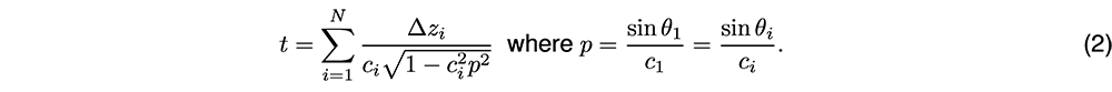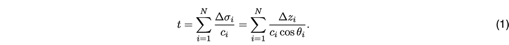 A A A Volume : 46 Part : 1 Proceedings of the Institute of Acoustics Inverting the sound speed profile from multi-beam echo sounder data and historical measurements – a simulation study Y. Gourret, University of South-Eastern Norway, Horten, Norway T. Brander, University of South-Eastern Norway, Horten, Norway K. T. Hjelmervik, University of South-Eastern Norway, Horten, Norway 1 INTRODUCTION The ocean’s lack of transparency offers plenty of opportunities for illegal trade enterprises1, terrorism, and covert military operations. Unmanned surface vehicles and autonomous underwater vehicles are possible disruptive technologies that might counter these threats2. The lack of human decision makers puts strong requirements on the autonomy of the vessels. Also, the inherent compactness of these vessels imposes strong restrictions on the amount and size of installed hardware. For manned sonar operations, sound speed probes are used to determine the local sound speed profile, which is then used to estimate the sonar performance. For unmanned vessels, the extra payload for sound speed probes should be avoided. Ocean models provide an alternative source of information on the underwater environment. However, their predictions are still unable to provide the level of detail and accuracy required for small-scale sonar operations in littoral environments. Climatological data3 and other statistically derived oceanographic data4,5 may also provide information on the present sound speed, but fail to account for local spatio-temporal effects. Through-the-sensor techniques is an alternative means of assessing the environment. Sound speed inversion from multi-beam echo sounder (MBES) data is addressed in several studies where the main goal is to improve topographic measurements6,7,8,9. Common for all these studies is that both the sound speed and the topography are assumed unknown in the inversion, and that they focus on the accuracy of the topographic measurements, rather than the quality of the sound speed profile (SSP). Hjelmervik10 proposed inverting the sound speed from single-beam echo sounder (SBES) data and direct measurements of the sound speed at limited depths in an area with known topography. A major limitation in this work is that an SBES yields information on the average SSP only, not its structure. Keyzer et al.9 inverts the SSP from MBES data in a similar manner using an empirical orthogonal function (EOF) representation for the SSPs. The advantage of using MBES data is that beams directed off the vertical will be refracted and thus contain information on the sound speed gradients throughout the depths. However, the cost function used by Keyzer et al. does not include any constraints that ensure that the resulting profile is physical. We invert the SSP from MBES data in an environment with known topography. The SSPs are represented using EOFs, such that the proposed SSPs can be modelled by a limited number of coefficients10. An acoustic raytracer models the travel time from the transmitter to the bottom and back to the receiver for proposed SSPs. The cost function compares the modelled and measured travel times for all beam angles, but also includes a priori knowledge on the SSPs through Tikhonov-type regularization11. We assess the validity and performance of our method through simulations, e.g. to explore its sensitivity to errors in the measured travel times. Our work thereby expands on former work10,9, as we include both MBES data to capture the vertical structure in the sound speed profile as well as constraining the EOF space explored by the method to physically feasible regions through the use of regularization. We also show that the problem is non-unique11 without regularization. 2 THEORY Recovering the sound speed is a travel time tomography inverse problem12, since the travel time depends on the SSP13. Each measurement yields a set of travel times corresponding to different beams processed from the received data on the MBES. We assume range-independent sound speed. As a simple example, consider a piecewise constant SSP, where the ith vertical layer has a constant sound speed of ci and a depth of ∆Zi . Consider a receiving beam directed with an initial angle θ1 to the vertical at the receiver. Assume a flat bottom with a seafloor depth zb. The arrival time of a signal arriving in this beam following a reflection off the sea floor, is then given by where σi is the length of the trajectory through the ith layer. The latter expression follows from the trajectory following a straight path due to the constant sound speed in each layer. By taking into account Snell-Descartes law we then have The expression does not depend on the order of the vertical layers. Thus two layers may be switched without impacting the travel times. Hence, the mapping from SSP to travel time is not injective, since there exist several different SSPs that give the same travel times. This ambiguity causes the non-uniqueness of the inverse problem. Since we have plenty of physical information about the SSP, we can use a priori information to deal with the lack of uniqueness. Not all vertical sound speed structures are physical even if they provide solutions to the inverse problem, and even if they are physically possible, they will have different associated probabilities of occurring. To structure the historical sound speed measurements, the SSPs are represented by a weighted sum of EOFs following the steps of Preisendorfer14. The EOFs are determined from a set of historical sound speed profiles from an area of limited geographical extent and a limited part of the year. We use the vector x = [x1, x2, ..., xK]T, where xk are the EOF coefficients, to write the SSP as The average SSP, ĉ, may be estimated from historical SSPs, which are first interpolated to a common depth grid with K depth steps. The matrix U then becomes a K×K matrix containing the EOFs estimated from the historical SSPs. The coefficient vect