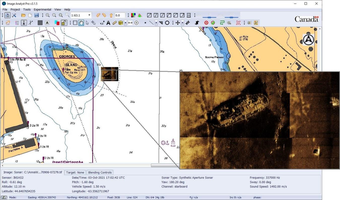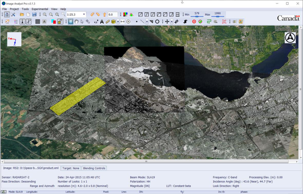 A A A Volume : 45 Part : 1 Proceedings of the Institute of Acoustics Adding SAS image processing capability to SAR image processing software A. Crawford, Defence Research and Development Canada, Atlantic Research Centre J. Secker, Defence Research and Development Canada, Ottawa Research Centre S. Gong, MDA Ltd., under contract to DRDC Ottawa Research Centre E. Shouldice, Defence Research and Development Canada, Atlantic Research Centre 1 INTRODUCTION One aspect of an ongoing collaborative research project at Defence Research and Development Canada (DRDC) Atlantic Research Centre (ARC) is investigation into change detection techniques for seabed monitoring applications. This research focusses on imagery collected using sidelooking sonar, both conventional sidescan (SSS) and synthetic aperture sonar (SAS). This paper discusses recent work on implementation of tools for working with sonar seabed images in existing software developed at DRDC Ottawa Research Centre (ORC) for use with synthetic aperture radar (SAR) images, Image Analyst Pro (IA Pro). Change detection (CD) is a method of finding objects or areas of interest by virtue of differences in imagery between present and historical surveys1,2. It is a powerful technique for reducing false alarm rate and is particularly useful in cluttered environments or where an area can only be surveyed periodically. In general, the CD data processing chain consists of: a) selecting present and historical images, b) co-registering the images, c) generating a difference map and d) detecting changes of relevance. As applied to sonar seabed imagery (SSS or SAS), a precursor to this chain is preparation of the raw sonar data into geo-referenced images of the seabed. Some CD techniques utilize the phase part of complex-valued image data, primarily from SAS, referred to as Coherent CD (CCD). Techniques that work on image amplitude are referred to as Incoherent or Non-coherent CD (ICD or NCD). CCD techniques offer the possibility of detecting changes to a scene that are subtle enough to be invisible in amplitude, at the cost of requiring highly accurate image co-registration (within a fraction of an acoustic wavelength). Change detection has been in operational use by the Canadian Navy for sonar image post-mission analysis (PMA) for well over 20 years. To date however, tools specifically designed to assist operators in doing change detection PMA have been lacking. Commercial software provides very good functionality for preparation of raw sonar data into geo-referenced images, and organizational methods for curating survey data have been developed by practice. Operators have relied on a process of identifying contacts and comparison of seabed images using “blink” or “swipe” tools, and on operators building knowledge of areas that are routinely surveyed. In other words, change detection is being done manually, which is demanding in both time and mental effort. This motivates development of automated change detection (ACD) tools for PMA. Automation will be increasingly valuable, even necessary, as the volume of survey data requiring analysis can only increase with wider operational adoption of SAS. The development described here, incorporation of SAS image processing capability into existing SAR image processing software, was pursued for two reasons: 1) research in progress can benefit from a platform for experimentation with tools and techniques, and 2) work that is at or near completion can be demonstrated to potential users. In the first case, this could include tuning of parameters and testing on image pair datasets by researchers. In the second case, what was desired is a supported, well-developed and polished interface so that demonstrations to operators can run smoothly. 2 IMAGE ANALYST PRO Image Analyst Pro (IA Pro) is an R&D prototype system developed by DRDC ORC, for development, testing, validation and demonstration of new algorithms for processing and exploitation of space-based SAR and space-based Intelligence, Surveillance and Reconnaissance (ISR) data from multiple-intelligence (multi-INT) systems and sensors, including Electro-Optical/Infrared (EO/IR), long-wave or Thermal Infrared (TIR), Automatic Identification System (AIS) ship self-reporting data and Radio Frequency (RF) detection and geolocation data3. The focus of IA Pro development is on algorithms and tools for Geospatial Intelligence (GEOINT) applications (e.g., ship detection, site monitoring and change detection) and Intelligence Preparation of the Operational Environment (IPOE) applications (e.g., terrain analysis, land-cover classification and shoreline extraction) to address Department of National Defence/Canadian Armed Forces (DND/CAF) requirements. IA Pro is proprietary software, and the intellectual property for IA Pro rests with the Crown. IA Pro includes algorithms and tools that, for example: (a) permit the display, manipulation, processing and exploitation of civilian and commercial space-based SAR data, often in advance of Commercial Off-The-Shelf (COTS) systems; (b) provide capability that is missing from COTS systems or needs to be packaged differently for DND/CAF use; (c) address the DND/CAF requirements for exploitation of RADARSAT-1 (R1), RADARSAT-2 (R2) and RADARSAT Constellation Mission (RCM) data; and (d) introduce automation not present in COTS software. Note that DRDC developed (i) Geospatial Data Abstraction Library (GDAL) C++ driver code to open and ingest the C-band SAR images from RCM, and (ii) Python code to extract meta-data from the C-band SAR images, and they released these to the open-source community via GitHub4. IA Pro development has been focused on civilian and commercial SAR satellites that are relevant to DND/CAF, including Canada’s R1, R2 and RCM, and the European Space Agency’s (ESA’s) Sentinel 1, and Germany’s TerraSAR-X and TanDEM-X. IA Pro provides full support for single, dual, quad and compact polarization SAR data, for both 