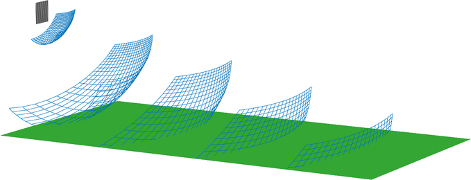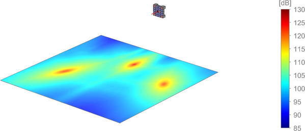 A A A Volume : 44 Part : 3 Proceedings of the Institute of Acoustics Loudspeaker matrix arrays: Challenging the way we create and control sound Evert W. Start, HOLOPLOT GmbH, Berlin, Germany 1 INTRODUCTION Sampling the considerable literature1,2,3,4,5,6 about loudspeaker arrays, it’s noticed that the focus is often narrowed down to one specific technology. In particular, beamforming and Wave Field Synthesis (WFS) are covered in separate studies and seem to be unrelated, or at best only remotely related, topics. Both will be introduced briefly. Beamforming is a spatial filtering technique used to aim sound in a specific direction. There are many benefits, which include enhanced power efficiency, improved uniformity of coverage, increased direct-to-reverberant ratio, and reduced sound spill. Beamforming techniques can be broadly divided into two categories; mechanical and electronic beamforming, used in curved line arrays and steered column speakers, respectively. WFS is a spatial audio rendering method, capable of delivering a physically correct reproduction of the auditory scene. Depending on the practical implementation, the loudspeakers are distributed along a horizontal line or across a (vertical) plane. Admittedly, at first glance these technologies seem to have very little in common, but from a wave perspective, it’s obvious that they are closely intertwined. More importantly, both technologies can benefit from each other. Principles and features which are considered to be unique for one technology can be incorporated into the other, and vice versa. Using Matrix Arrays, 3D sound fields can be reproduced and controlled precisely in every direction. This opens up new ways for creating and controlling sound in functional as well as creative applications. 2 ARRAY PRINCIPLES 2.1 Wave Interference The main underlying physical principle of any array is wave interference. Sound waves emitted by multiple sources interact with each other. Constructive interference occurs when the individual sound waves reinforce each other, building a wave of greater amplitude. Destructive interference occurs when the waves oppose each other, resulting in lesser amplitude. For waves that are neither fully in-phase nor out-of-phase, partial reinforcement or cancellation occurs. By combining multiple loudspeaker drivers into an array, sound can be reinforced in a specific direction, while being attenuated in other directions. Similar to frequency filters boosting or attenuating certain parts of a signal spectrally, arrays allow spatial filtering of the radiated sound field. 2.2 Beamforming The traditional way of controlling directivity is by physically pointing a horn-loaded loudspeaker to the audience. Alternatively, loudspeaker arrays (usually in the form of passive column speakers) can be used. Compared to horns, arrays typically have a narrower beam (at least in one dimension) and offer more precise control, especially at mid and high frequencies. Early realizations of loudspeaker arrays suffered though from a frequency-dependent beam width, yielding an uneven coverage and frequency response. Nowadays, the physics of loudspeaker arrays and their design principles are well understood and most artifacts can be avoided, or at least mitigated. The most important design criteria are the array size, driver density and driver directivity. At low frequencies a large array is needed to obtain sufficient directivity control. At high frequencies a small array will do, but a dense driver distribution is required in order to avoid spatial aliasing up to a certain frequency limit. These criteria can be quantified as follows. The beamwidth B-6dB, (i.e., opening angle of the beam defined by the -6dB points5), is proportional to the ratio between the wavelength λ and array length L To avoid spatial aliasing, the distance d between the drivers should satisfy the spatial Nyquist criterion Using λ = c/f, with frequency f and the speed of sound c. the spatial Nyquist frequency can be expressed as: For frequencies below fNyq no spatial aliasing occurs. In case of narrow beams (with beamwidth B) a less strict ‘control frequency’ criterion can be derived4 Note that fctrl ≥ fNyq. Between fNyq and fctrl grating lobes may still occur but they don’t interfere with the main lobe and don’t affect the direct sound coverage of the audience. Grating lobes can be attenuated by using directional loudspeakers, but this will limit the steering capabilities of array. Over the past decades, several beamforming technologies have emerged, each making different design and performance trade-offs. The two most established types will be discussed in more detail now. 2.2.1 Mechanical Beamforming The first type is mechanical beamforming, used in Line Array technology. In its original form2,6, a line array comprises a number of relatively large loudspeaker elements mounted in a curved line (typically, J-shaped), all driven in phase. In order to reduce spatial aliasing, directional waveguides are employed to minimize driver interference at high frequencies. The vertical dispersion is governed by the curvature of the array. The horizontal coverage angle is fixed and defined by the radiation pattern of the individual elements. In order to change the vertical dispersion, the splay angles between the cabinets need to be adjusted. More recently, the spectral and spatial performance of a line array can be optimized by processing the input signals to the loudspeakers. However, after it is deployed, the direction and width of the beam cannot be altered much due to the narrow vertical dispersion of the HF waveguides and the curvature of the array. 2.2.2 Electronic Beamforming and Steering The second technology discussed here is electronic beamforming, mostly used in beam-steered columns (either analog or digital). Typically, the array consists of many, densely spaced, wide dispersion drivers. In order to obtain a constant beamwidth over a wide freq