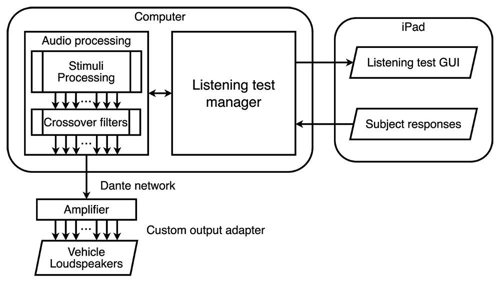A A A Volume : 46 Part : 3 Proceedings of the Institute of Acoustics Challenges in the subjective evaluation of spatial audio in automotive environments B. I. Bacila, Institute of Sound and Vibration Research, University of Southampton, UK M. Orita, Institute of Sound and Vibration Research, University of Southampton, UK F. M. Fazi, Institute of Sound and Vibration Research, University of Southampton, UK 1 INTRODUCTION 1.1 The car cabin as an environment for audio In professional music production, the ultimate test for the final mix is often known as the “car test”1. That is, when the mixing engineer takes the finished product out of the studio for the first time and plays it in a real environment; better said, in the environment in which it is expected it will be most often reproduced. Of course, a car is not a replacement for a set of studio monitors and a well-treated listening room. But this test is specifically conducted as a “trial by fire” due to the unfriendly nature of an automotive environment. It is no surprise that a well-balanced mix can suffer from significant degradation when reproduced through loudspeakers that are not positioned optimally in a car, or when very early reflections caused by near surfaces such as windows cause a harsh spectral distortion. However, as mentioned by Rumsey2, a particular advantage of the automotive environment is that the positions of the listeners are known, along with detailed information about the audio system and the environment. Increasing efforts have been made in an attempt to quantify the general particularities of such an environment, and a white paper has been published by the AES Technical Committee on Automotive Audio (TC-AA)3, in which a set of initial metrics are proposed. These are, however, at the current time, not including any metrics describing spatial aspects of the sound field. Even though the audio experience is increasingly important, the position of the loudspeakers in a vehicle is not always ideal, due to space and safety restrictions. The most common locations for the drivers are in the lower part of the doors for the woofers, and higher up for mid-frequency drivers and tweeters. Nonetheless, these positions are rarely ideal in terms of relative angles and symmetry to the seated listener. Whilst this may not be desirable for stereo reproduction, there are a few advantages that this placement may bring. For example, spatial audio can be reproduced more easily, since many loudspeakers are positioned all around a listener. With this, of course, the need for accurate spatial audio reproduction becomes important. The first step in trying to quantify the quality of spatial audio reproduction is to conduct some subjective evaluation. This step will highlight the limitations of the receiving end of the signal chain - the listener. Once the perceptual aspects are identified, a natural next step would be to measure certain physical properties of the signal chain, from environment alterations to properties of the signal itself. Ultimately, it is desirable to know which parameters could be adjusted in order to provide the listener with an enhanced spatial audio experience. 1.2 Listening tests in automotive environments Subjective evaluation of reproduced audio is a well-researched field, with well-documented procedures and methodologies. For instance, a number of standards4,5 provide detailed descriptions of method ologies, environments, test protocols and statistical analysis which may be used to ensure consistency between experiments. Multiple studies have previously investigated the perceptual aspects of spatial audio reproduced in a vehicle. Due to the physical limitations of an automotive environment it is common that a virtual assessment is conducted. This can be done via different methods: auralization6–10, Cross-talk Cancellation (CTC )11, Ambisonics12, Spatial Decomposition Method (SDM)13 and combinations of the previous14. It is indicated in the literature that certain aspects of the reproduced sound field are preserved in the virtual tests7,8,10,15, although not much emphasis was placed on spatial attributes. Kaplanis et al.13 hypothesised that aspects such as externalisation and the ease of assessing spatial attributes may be improved by reproducing the SDM-aquired sound field through a large spherical loudspeaker array. Camilleri et al.14 noted that spatial attributes may not be preserved well enough in the binaural reproduction of the aforementioned experimental setup. Similarly, Hegarty et al.8 identified a number of differences in the preservation of attributes in a binaural reproduction system and recommended that head tracking should be used in virtual listening tests to unveil some dynamic cues involved in localisation. Specific experiments, for instance those that do not require changing of the audio system or drivers, could be conducted in-situ. Whilst they are logistically more complex, they may be chosen over their virtual counterparts if the ecological validity of the environment is of greater importance, while also addressing some shortcomings. Virtual assessments may present a particular difficulty in reproducing the ecological validity of the actual environment, from the specific non-linearities, to the position of the driver seat and the confined space of the vehicle. These elements are integrated into the perceptual assessment of the overall experience. Furthermore, since previous literature is not entirely conclusive on how well the perception of different spatial attributes is preserved in a virtual environment, it is advantageous to still conduct in-situ experiments. The decision to conduct an in-situ listening test in an automotive environment is not without particular challenges. Some of these challenges are identified and discussed in this paper. A number of practical solutions are proposed to contribute to the development of a methodology framework and of a set of good practices to be