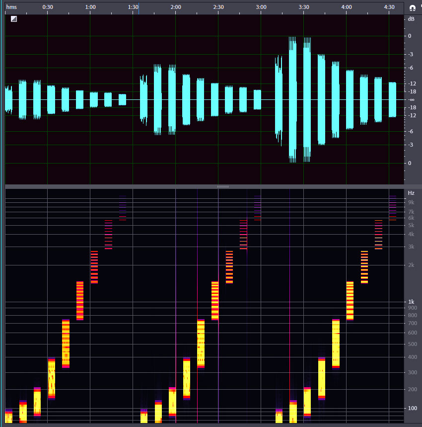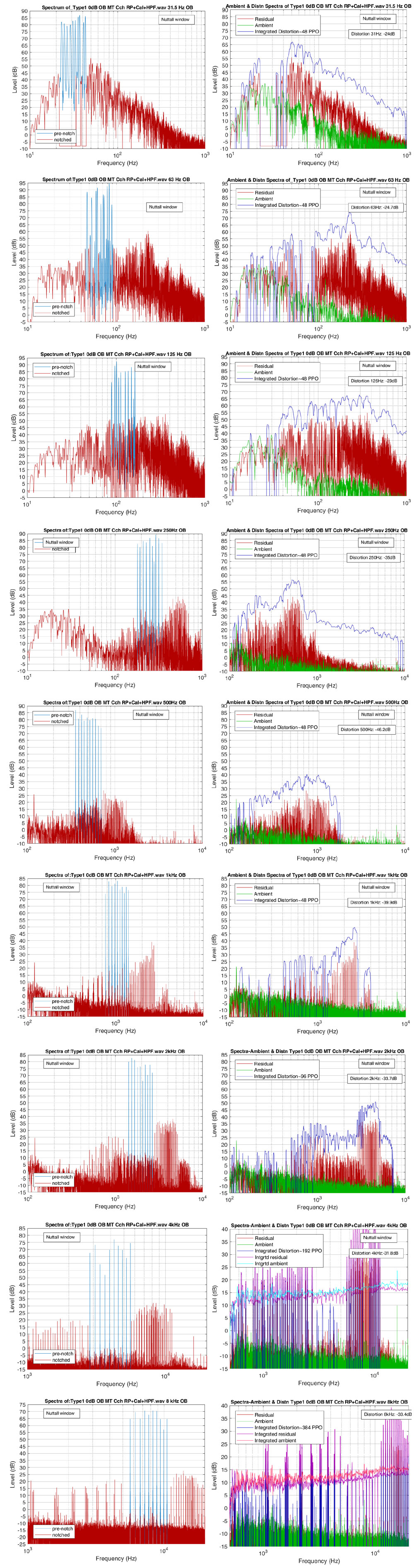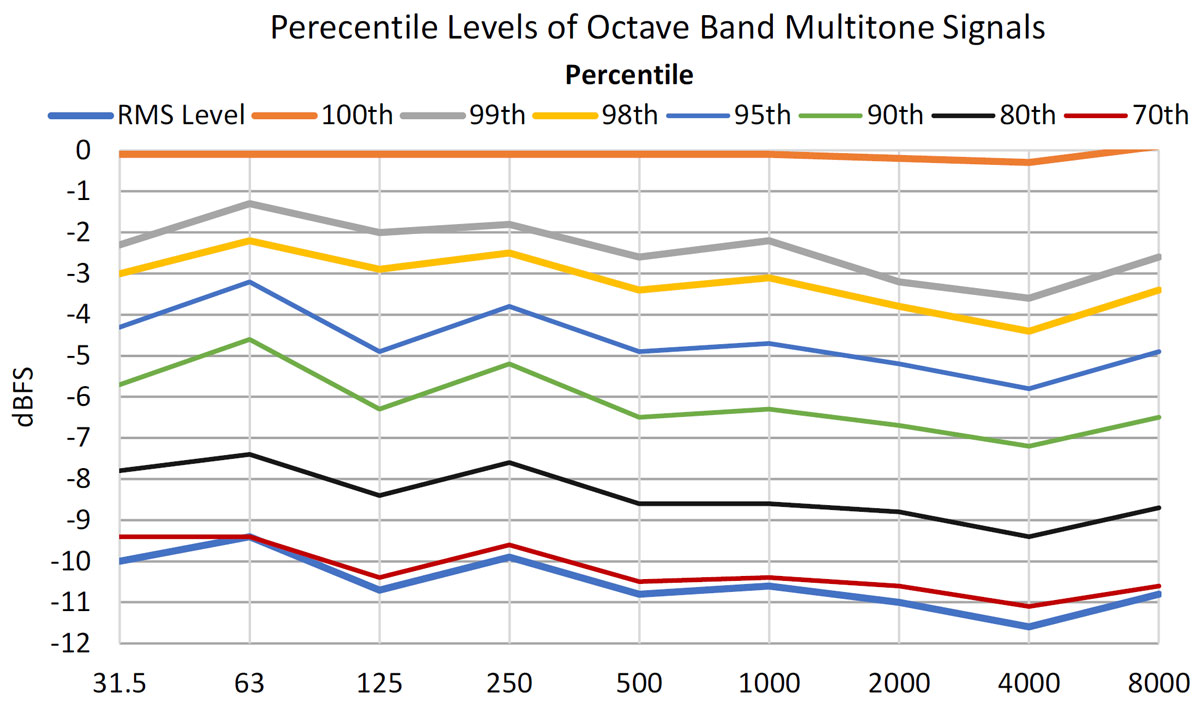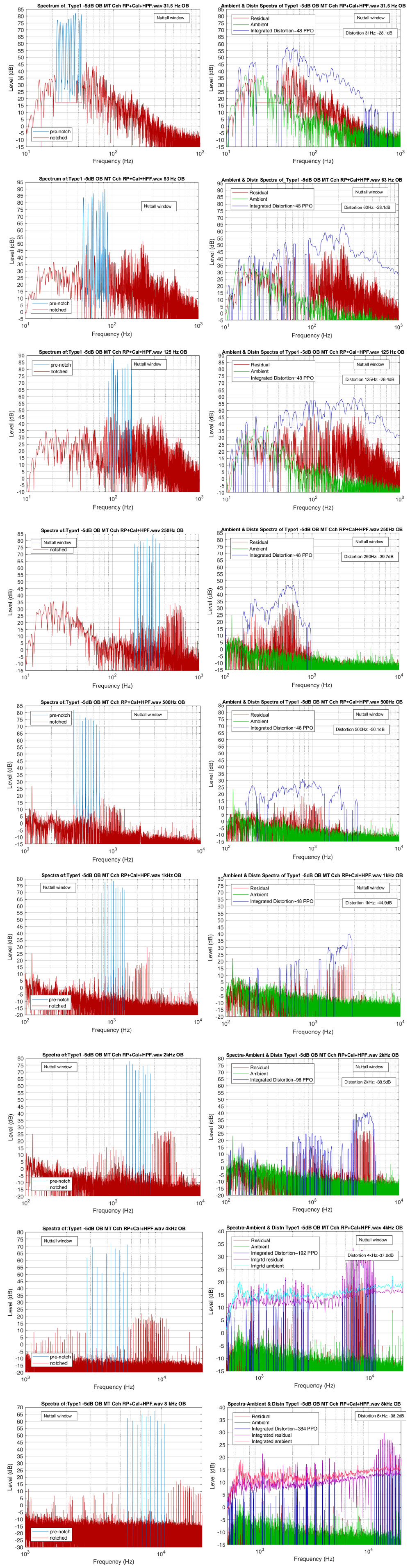 A A A Volume : 46 Part : 3 Proceedings of the Institute of Acoustics Measurements of multitone distortion in octave bands of a cinema mixdown loudspeaker system G. Leembruggen, Acoustic Directions / ICE Design, Australia A. Mardikian, Sony Pictures Entertainment, USA 1 INTRODUCTION 1.1 General For many years, distortion produced by electroacoustic systems has been measured in the forms of total harmonic and total intermodulation distortion. Traditional harmonic distortion measurements using a single test tone or sweeping tone are easy to execute but do not reveal intermodulation products and bear little similarity to music and speech. More recently, Czerwinski, Voishvillo et al [1], [2] produced a comprehensive and detailed treatise on the use of a multitone signal to assess the distortion of sound systems. As a multitone test signal excites many frequencies simultaneously, it produces both harmonic and intermodulation distortion products and therefore provides a more rigorous test signal for measuring system non-linearities. Temme and Brunet [3] provide a discussion of multitone distortion measurements and note that system theory (Refs 3 and 4 in that paper) shows that more than two tones are needed to fully characterize a non-linear system. In his loudspeaker testing facility, Goertz [4] uses sixty tones spread over the range of 20 Hz to 20 kHz. An application note prepared by Klippel Gmbh [5] provides insights into how multitone tests reveal different aspects of loudspeaker non-linearities. Figure 1, which is extracted from Kippel’s application note [5], is a good illustration of the spectra of a wideband multitone signal and distortion. However, Temme and Brunet [3] also highlight three disadvantages of multitone tone distortion measurements: The number of intermodulation tones grows extremely fast with the number of stimulus tones. When power summing the distortion products, the individual distortion components and distortion orders are lost in the measurement. Careful selection of the stimulus frequencies is required so that they match the individual FFT bins in the analysis to prevent frequency aliasing. 1.2 Stimulus for this Work The authors are members of the SMPTE’s 27 CSS committee for Cinema Sound Systems, and this group recently initiated a project to better understand the reasons why some cinema soundtracks don’t sound as good as they should. Part of this project was to undertake measurements of i) non linear distortion and ii) loss of coherence in some cinema sound systems. Given the ability of multitone test signal to excite many frequencies simultaneously, this distortion type was investigated for use in the cinema tests. Although the distortion components with the wideband multitone test signal are visible, there is no information to relate the input frequency bands to output distortion products. In response to this problem, the authors suggested using multitone signals in separate octave bands (OBs) to gain greater insights into the relationships between distortion and perceived sound quality in various sections of soundtracks. Figure 1: Example from Spectra of input multitone signal and distortion products (from [5]). 2 STRUCTURE OF THE TEST SIGNALS The test signal consists of five-second-long bursts of ten tones in each of nine octave bands. Between each burst is a five-second-long gap to allow i) reverberation to die away and ii) analysis of the ambient noise that was present after each octave band burst. To prevent overlap of harmonics and fundamentals in each band, the frequencies of the tones should be prime numbers. In the bands 63 Hz to 8 kHz, the frequencies are prime numbers and were selected for best consistency in the spacing between frequencies. In the 31 Hz band however, there were not sufficient prime numbers in the range 22 Hz to 44.5 Hz and frequencies were selected for suitable spacing. Table 1 lists the selected frequencies. Table 1: Frequencies of the tones in each octave band. Octave band Multitone Frequency 31.5 23 24.7 26.6 29 31 33 35.5 37 41 43 63 47 53 59 61 67 71 73 79 83 89 125 89 97 101 107 113 127 137 149 157 163 250 181 193 211 229 251 269 281 293 317 347 500 359 389 421 449 487 523 563 607 653 701 1000 769 839 911 983 1051 1123 1187 1259 1327 1399 2000 1423 1543 1663 1801 1931 2063 2207 2351 2503 2663 4000 2833 3089 3359 3643 3929 4241 4561 4889 5227 5581 8000 5659 6173 6701 7229 7757 8311 8861 9413 9967 10531 So that the test signal replicates the demands on long-term and short-term power levels of typical programme content, it is desirable that the temporal structure of the multitone signals is similar to that content. In its simplest form, the crest factor (which is the ratio in dB of the peak signal level to the long-term RMS level of the signal) should be approximately 12 dB or higher. This can be achieved by randomising the phases of the individual tones. A random number generator was used to produce a set of ten randomised phase shifts. These phase shifts were applied to each of the ten tones, which were summed to yield the multitone signal. The crest factor of the composite signal was then computed and the process repeated three times. The set of phase shifts with the highest crest factor was selected and applied to each of the nine bands. Table 2 shows the selected set of phase shifts. Table 2: Set of phase shifts applied to the ten tones. Tone Number 1 2 3 4 5 6 7 8 9 19 Phase shift (Degrees) 63 75 -34 -117 169 -32 37 -92 -95 -158 The statistics of the composite tone signal are shown in Table 3. (Kurtosis is a statistical measure used to describe the degree to which the levels in the composite signal gather in the tails or in the central peak of a frequency distribution. (The peak is the tallest part of the distribution, while the tails are the ends of the distribution). The percentile levels of the composite signal in each OB are shown graphically in Figure 2. Table 3: Statistics of the resulting composite signal in each
