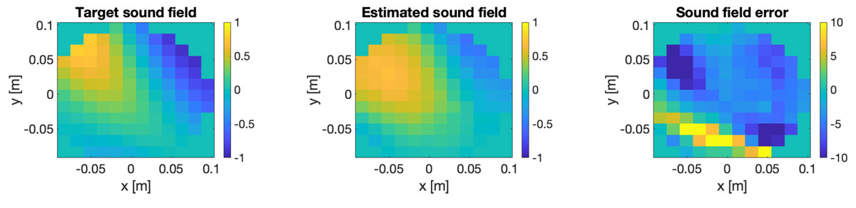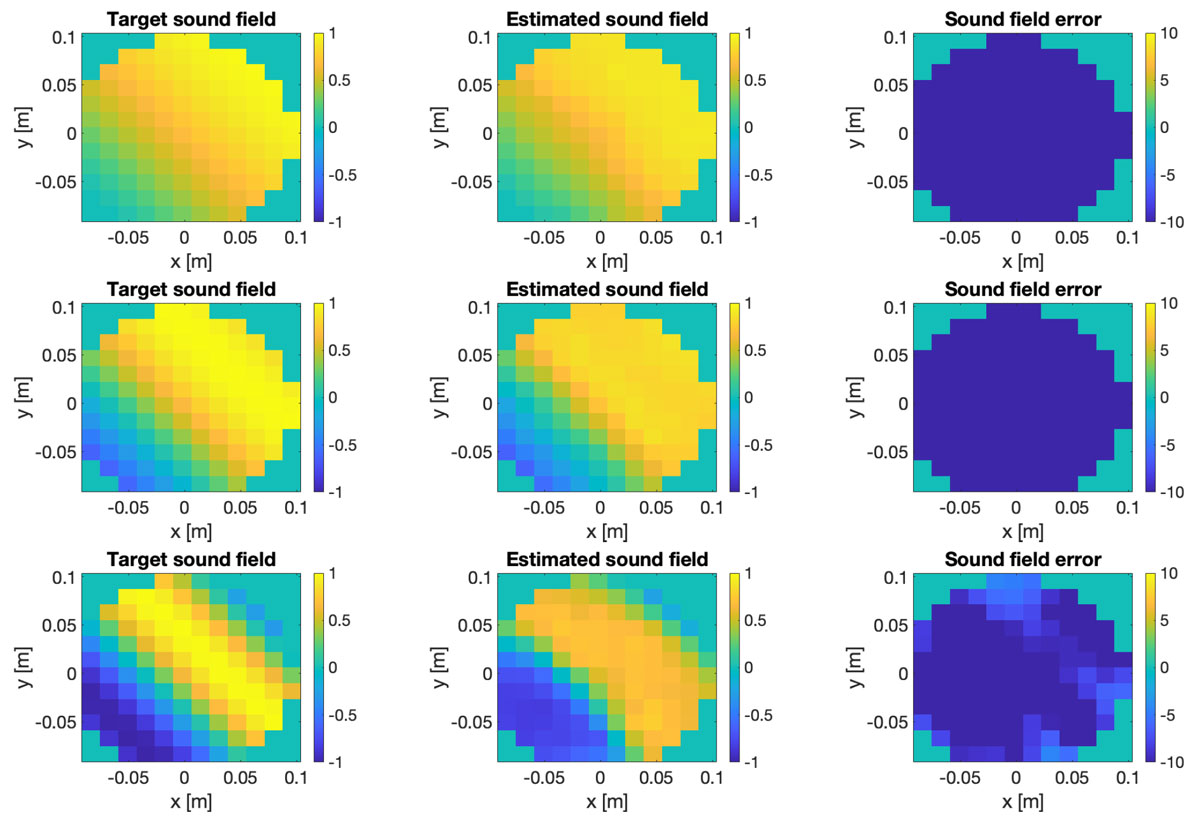 A A A Volume : 46 Part : 3 Proceedings of the Institute of Acoustics Sound field analysis using a complex-valued neural network Vlad S. Paul, Institute of Sound and Vibration Research, University of Southampton, UK Nara Hahn, Institute of Sound and Vibration Research, University of Southampton, UK Philip A. Nelson, Institute of Sound and Vibration Research, University of Southampton, UK 1 INTRODUCTION Virtual sensing refers to the estimation of a sound field at locations where physical sensors are not present. For example, the sound field can be predicted around the listeners head, where direct measurements might be impractical or cumbersome. This is usually achieved using data from existing microphones and mathematical models that describe the acoustic wave propagation. Related signal processing algorithms have been developed for various applications such as active noise control (ANC)1,2, sound field reconstruction3,4 or beamforming5,6. More recently, machine learning approaches have been developed to estimate the sound field at virtual sensors7,8. In this paper7, the authors use generative adversial networks (GANs) to reconstruct spatial room impulses in conventional rooms and show that they can use GANs to enhance the sound field reconstruction performance by recovering some of the energy at high frequencies. This information at high frequencies is usually lost or distorted, due to the Nyquist criterion that requires a fine spatial sampling of microphones to represent the rapid variations of the sound field that occur at high frequencies. Traditional methods based for example on spherical harmonic expansion struggle to accurately reconstruct sound fields at frequencies above this aliasing threshold due to spatial aliasing and truncation errors. Various approaches have been developed throughout the years to increase the aliasing-free bandwidth using optimal spatial sampling strategies9,10 or signal processing techniques such as compressive sensing11. More recently, neural network architectures have been shown to partly overcome spatial aliasing at high frequencies for different applications7,12. Compared to traditional methods, these authors show that machine learning models can achieve a higher sound field reconstruction performance by improving the recovery of high frequency information, that would otherwise be lost. In this work, a simple complex-valued multilayer perceptron (cMLP) is used to learn statistically the spatio-spectral properties of single frequency plane waves from various directions recorded by a microphone array on the surface of an open sphere. The network model is trained to predict these sound fields at control points in a sphere of a smaller radius across a range of frequencies, including those above the aliasing frequency. 2 SOUND FIELD RECONSTRUCTION USING SPHERICAL HAR MONICS 2.1 Problem description In this work, the task considered is the prediction of the sound pressure at a set of control points densely distributed throughout a sphere of radius rctl = 0.1 m, similar to the size of the human head. The available data from which the predictions are made consists of pressure computed using a larger open spherical microphone array with radius rm = 0.25 m. The open sphere microphone array was simulated using 32 sensors on the surface of the sphere positioned at the same locations as those of an Eigenmike em3213. Assuming a maximum spherical harmonic order of N = 4, that follows from the array’s spatial sampling limitations, the aliasing frequency above which the array will struggle to capture and represent accurately the sound field is given by where c = 343 m/s is the speed of sound. Above falias, spatial aliasing occurs, which means that the spatial sampling of microphones on the sphere is insufficient to capture the spatial variations of the sound field at higher frequencies. One of the main challenges of this task is the reconstruction of the sound field at frequencies above falias, where spatial aliasing degrades the reconstruction accuracy. In addition, as discussed in the next section, issues related to the zeros of the spherical Bessel functions at specific frequencies might introduce numerical instabilities. To address these challenges, a complex-valued network model is investigated as an alternative approach for sound field reconstruction. 2.2 Spherical harmonics-based sound field reconstruction Assuming a source-free and homogeneous medium, the pressure p(k, r) at a general point r = (r, θ, ϕ) can be computed using the spherical harmonic expansion of the solution to the Helmholtz equation10 as: where n, m are the degree and order of the spherical harmonics, respectively, k denotes the frequency dependent wavenumber and pnm are the modal coefficients that are independent of r and represent the amplitude of each spherical harmonic mode in the sound field. The term jn(kr) is the spherical Bessel function of the first kind of order n evaluated at kr and are the spherical harmonic functions. Using the pressure p(k, r, θ, ϕ), one can compute the modal coefficients pnm by first computing the spherical Fourier transform coefficients which are radially dependent and then remove the radial dependency to isolate the modal coefficients . Once the modal coefficients are known, the pressure at any other point r′ = (r′, θ′, ϕ′) can be reconstructed from 2.3 Limitations of the use of spherical harmonics Using this approach, one can estimate the pressure at different points in the sound field, however several limitations occur. First, when the radial dependency is removed, the division by jn(kr) can lead to numerical instabilities when jn(kr) = 0. The zeros in the spherical Bessel functions are frequency- and radius-dependent and can therefore impact the reconstruction of the pressure at certain frequencies for a fixed radius. A second limitation has been discussed above and is related to spatial aliasing. For example, if p(k, r, θ, ϕ) contains distor